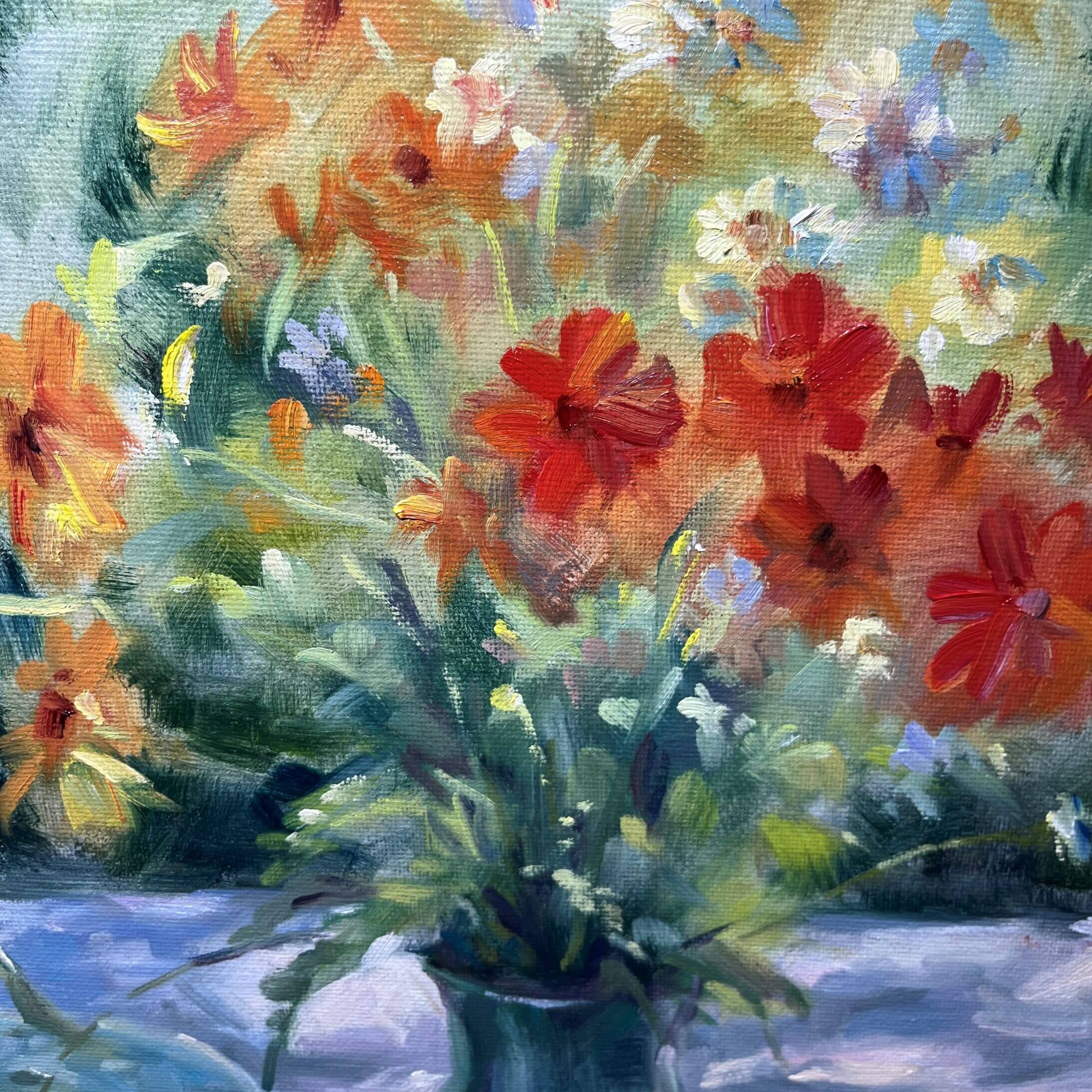 This workshop is for everyone who has an interest in painting with oils or acrylics. Working from inspiring still life compositions, we’ll be translating them into expressive oil paintings with an emphasis on choosing, mixing and applying clean colours, generating light and movement, while developing a deeper feeling for your own visual and painting style.I aim for simplicity in all my creative work, and that extends to my workshops. I deliberately keep numbers limited to 5 or 6 students to ensure that I can offer group, and detailed one to one instruction throughout the day.Painting with oils is immensely rewarding, it repays working to some essential rules of thumb regarding colour and composition, patience and preparation, and perhaps above all – simplicity.